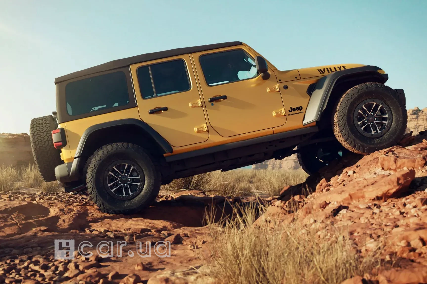 Окрім технічних змін, Wrangler Willys 392 відзначається особливим зовнішнім виглядом. Новинка доступна у новому фірмовому кольорі Goldilocks — насиченому жовтому відтінку, який миттєво привертає увагу. Поєднання цього кольору з чорними акцентами створює відчуття потужності та впевненості, властиве позашляховикам Jeep.